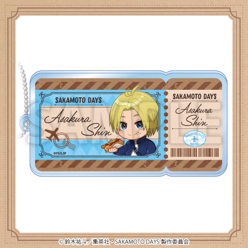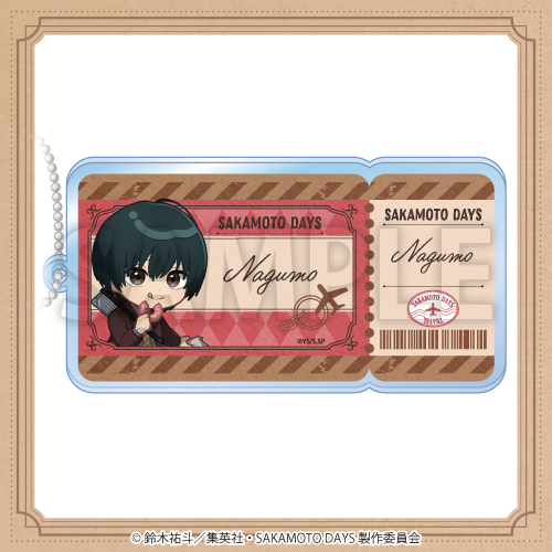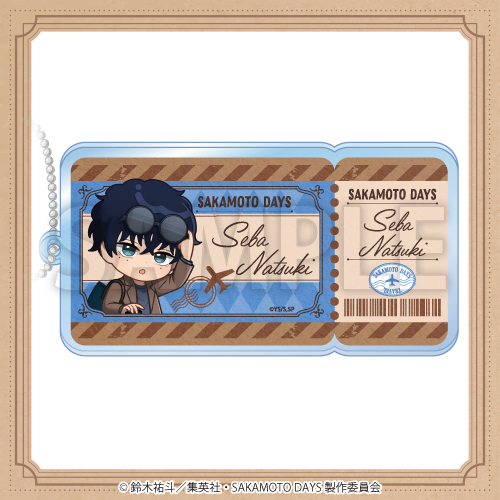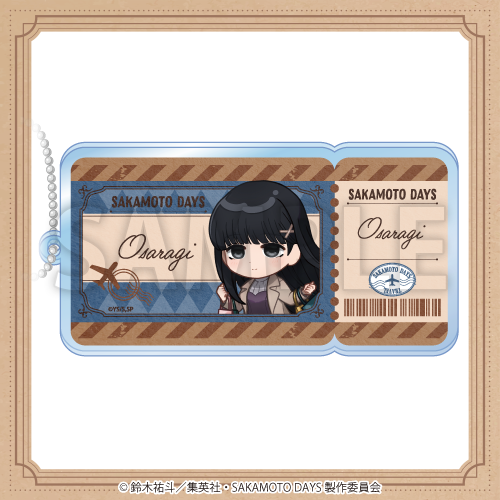 新規描き起こしデフォルメイラストを使用した、航空チケット風アクリルキーホルダー!バッグにつけて一緒におでかけ♪